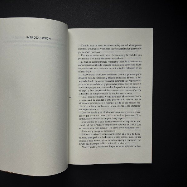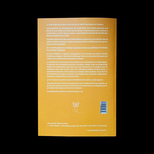 Representa la manifestación del sentimiento de muchas personas que tienen en sus manos el cuidado de los demás. Es una propuesta a mirar de otra manera, pudiendo contenerlas y acompañarlas conociendo las dificultades que sortean en su andar. En un interrogante con diversas respuestas ofrece la posibilidad de hallarlas hoy al darles visibilidad. Es una invitación a mejorar la perspectiva, recreando, modificando, protegiendo y optimizando el bienestar físico y/o emocional de aquel que cuida y en consecuencia de quienes los rodean. En esta obra encontrarás una propuesta para identificarse con ellos y poder lograrlo. Ser parte de este mundo conociendo de qué se trata permite que aportes un granito de arena para hacer más llevadera una de las peores soledades que la actualidad demuestra. La soledad del cuidador encuentra aquí su voz.